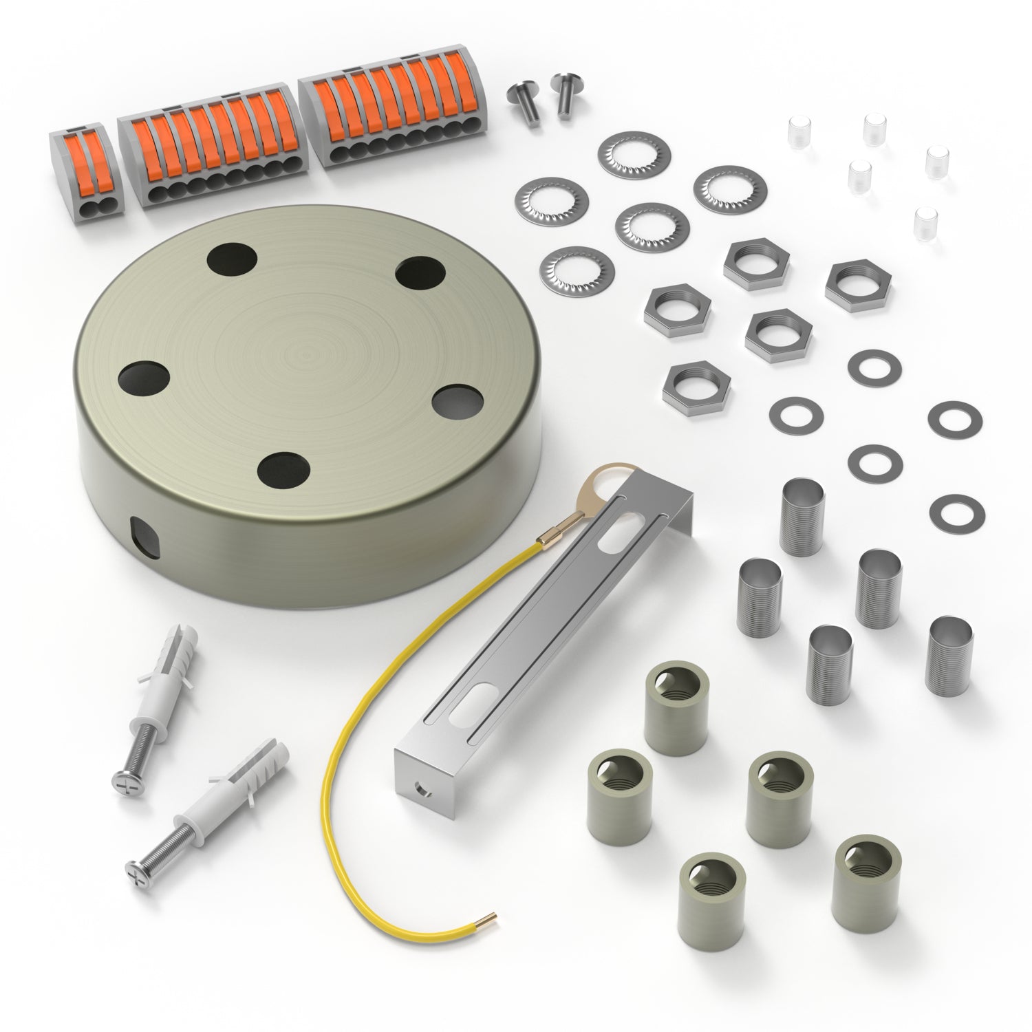 Supplied as standard including mounting material, earth wire and 5 matching strain reliefs.