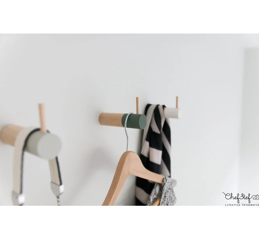 This handmade wall hook (beech wood) is very suitable as a coat hook, wall hook or wall decoration. You can choose one colour or combine your favourite colours.