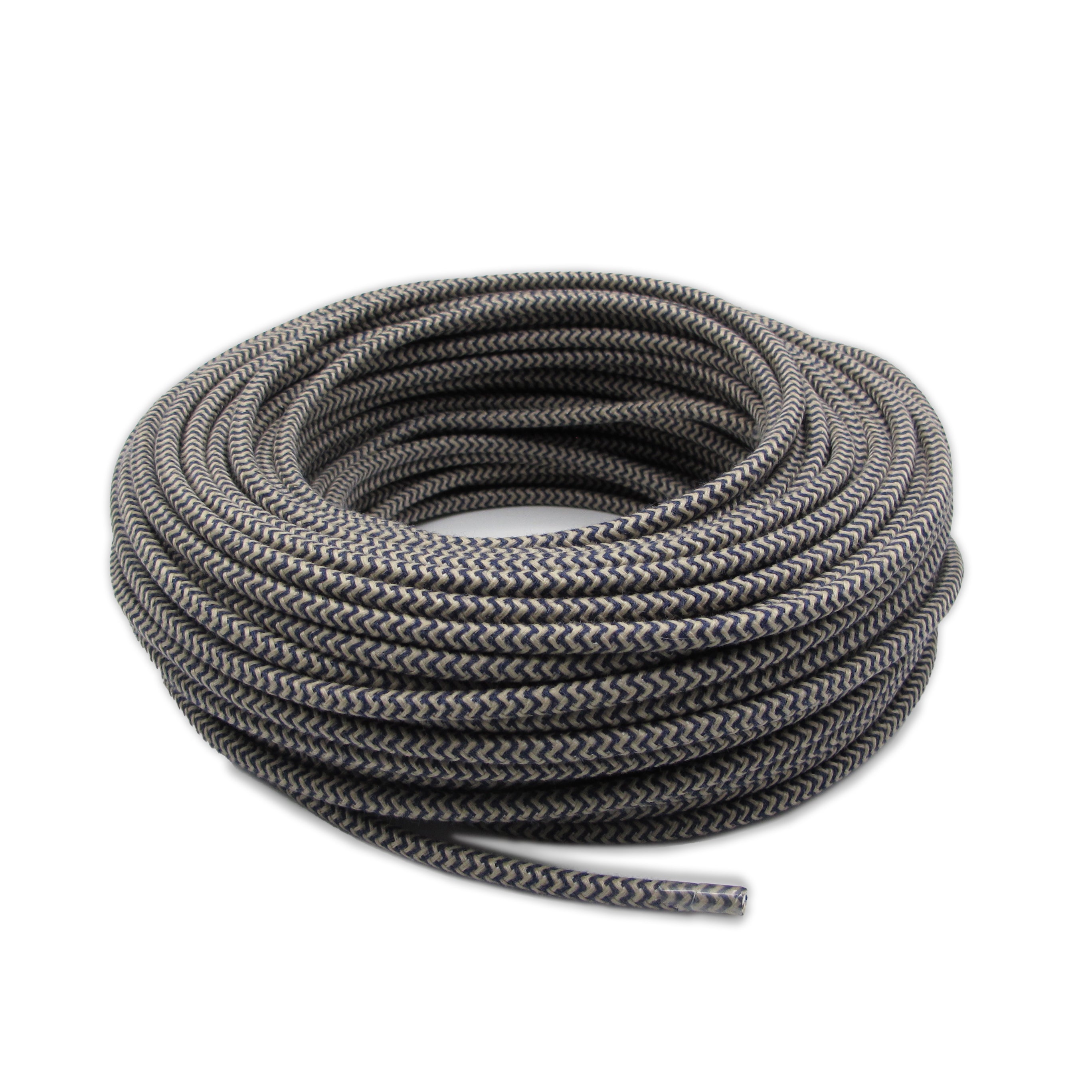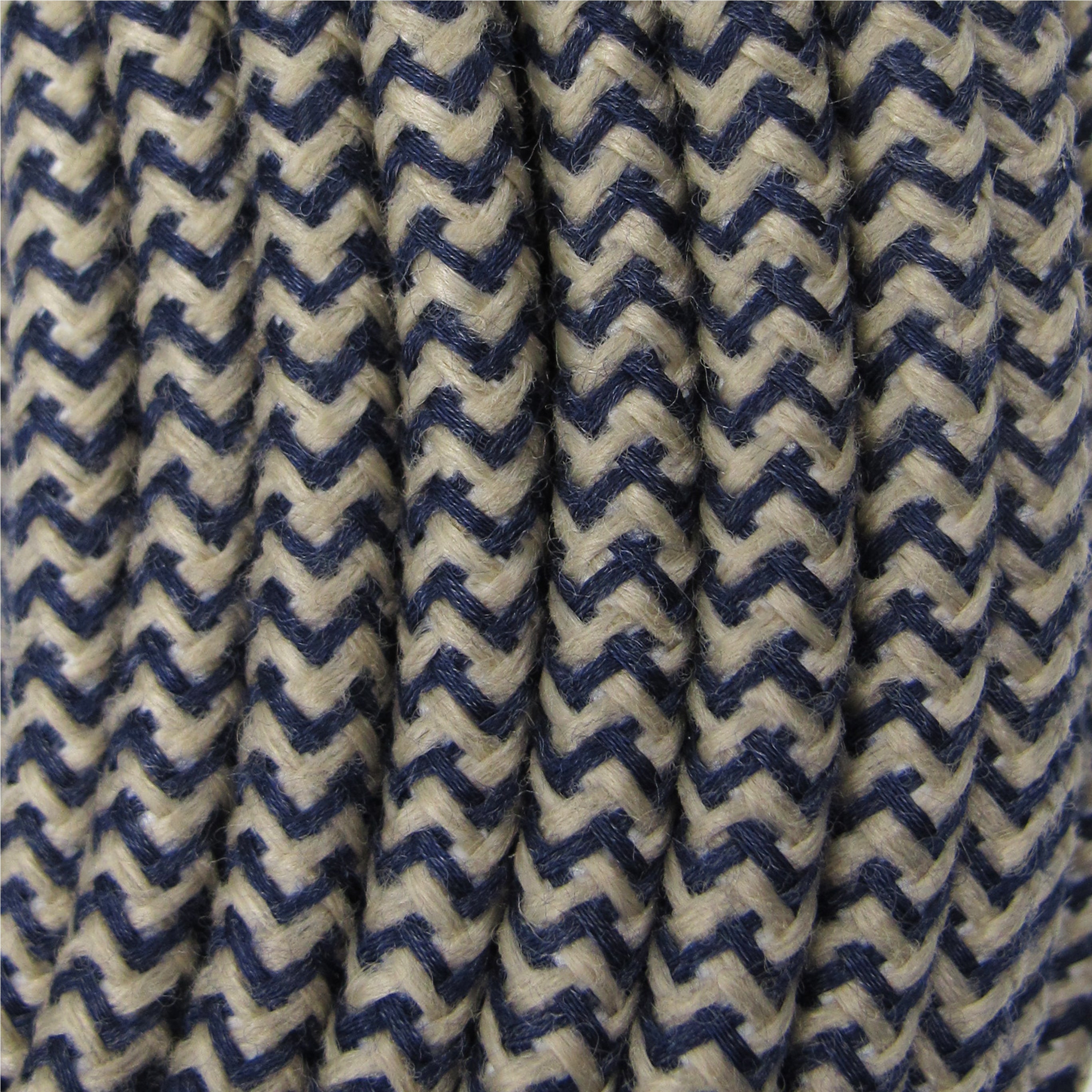 Fabric Cord Sand & Dark Blue - round linen- zigzag pattern
