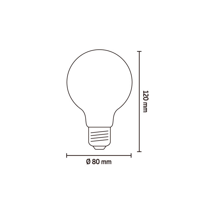 This model has a diameter of 80 mm and is suitable for fittings with an E27 screw thread. The golden light source of the model GLB80 has an output of 250 Lumen, uses 3.5 Watt and has a colour temperature of 2100 Kelvin (warm light)