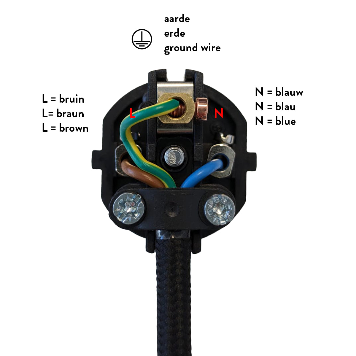 Ook kan 2-polig snoer gebruikt worden voor deze stekker, echter ontbreekt dan de aansluiting van de aarde-draad waardoor de lamp niet geaard is. Deze stekker is geschikt voor gebruik in vochtige ruimten, zoals de badkamer.