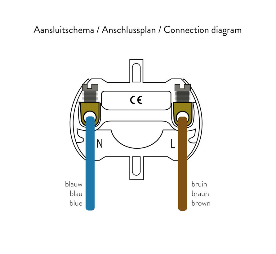 This is a non-earthed fitting and suitable for connection to 2-pole cord. The fitting can also be connected to a 3-pole cable, however, the earth wire cannot be attached in that case. This fitting is not suitable for use in damp rooms, such as the bathroom.
