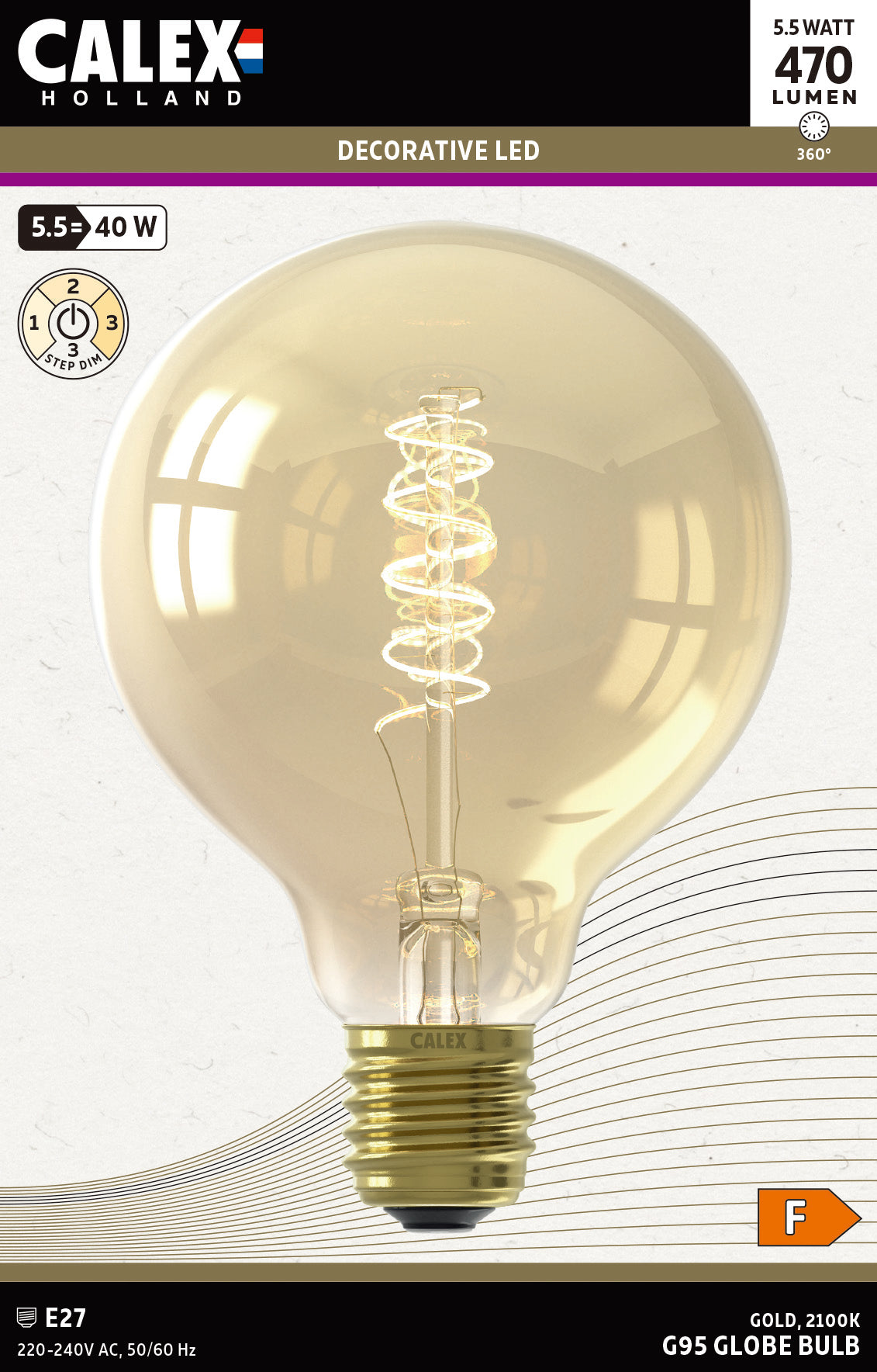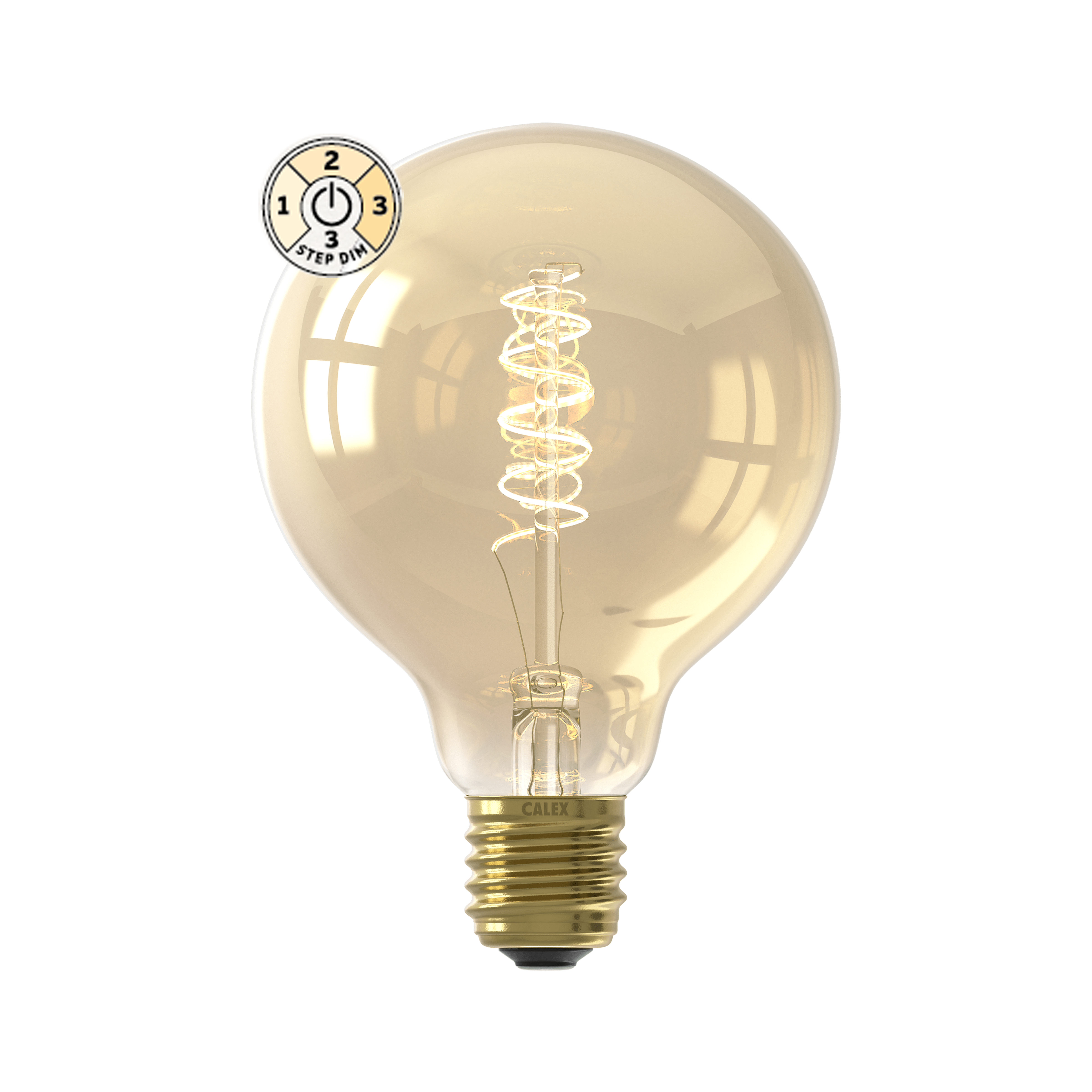 Creëer eenvoudig de perfecte sfeer met de Calex 3-staps dimbare LED-lamp (G95, Edison, E27). Deze 3‑standen lamp schakelt via je bestaande lichtschakelaar (aan de muur of snoer) tussen 100%, 50% en 25% lichtsterkte. Je hebt dus geen speciale dimmer* nodig.