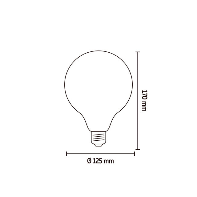 De lamp heeft een E27-fitting, waardoor hij in de meeste standaardarmaturen past. Deze lichtbron heeft een diameter van 125 mm en hoogte van 170 mm.
