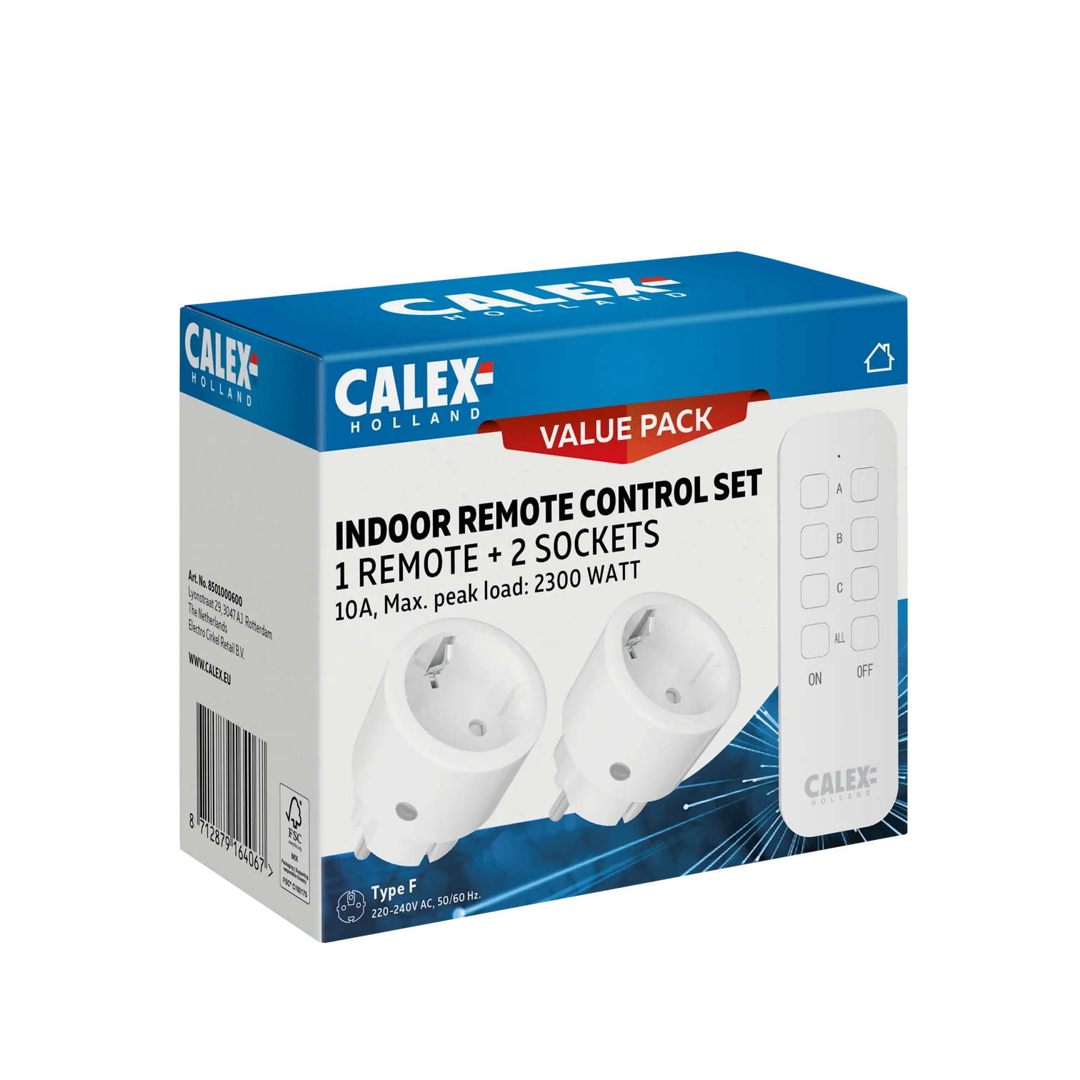 Met de Calex Binnen Stekkerset bedien je eenvoudig je verlichting en elektrische apparaten binnenshuis. Deze set met 2 slimme stopcontacten en afstandsbediening is ideaal voor iedereen die meer comfort, gemak en energiebesparing wil in huis.