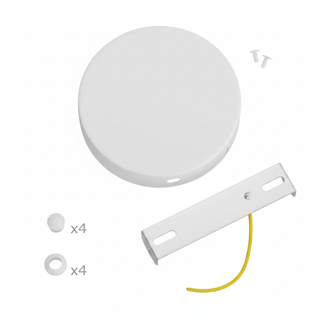 Met zijn strakke design en mat witte afwerking past deze plafondkap moeiteloos in allerlei interieurs. De vier zijgaten maken het mogelijk om kabels in verschillende richtingen te laten lopen, waardoor je eenvoudig een clusterlamp of een unieke verdeling van pendellampen kunt creëren. Ideaal voor boven een eettafel, in een hal of als opvallend lichtpunt in een groot vertrek.