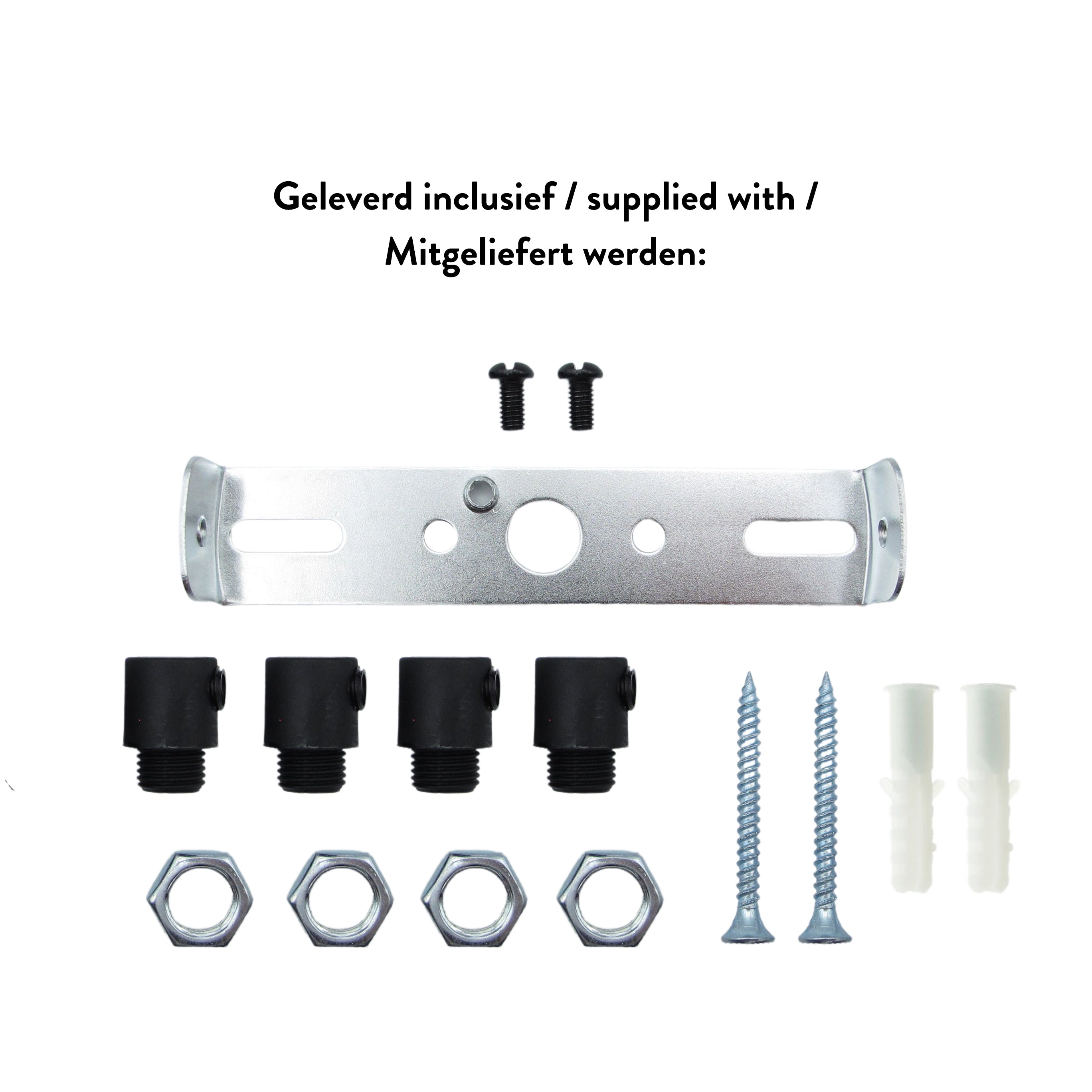 ✓ bevestigingsmateriaal plafond (beugel, 2 schroeven + 2 pluggen)