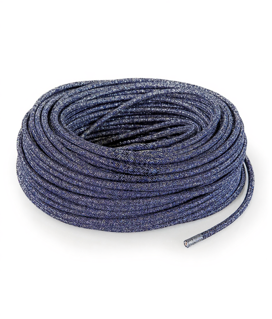 Strijkijzersnoer Blauw 'Jeans' (glitter) - rond, effen stof