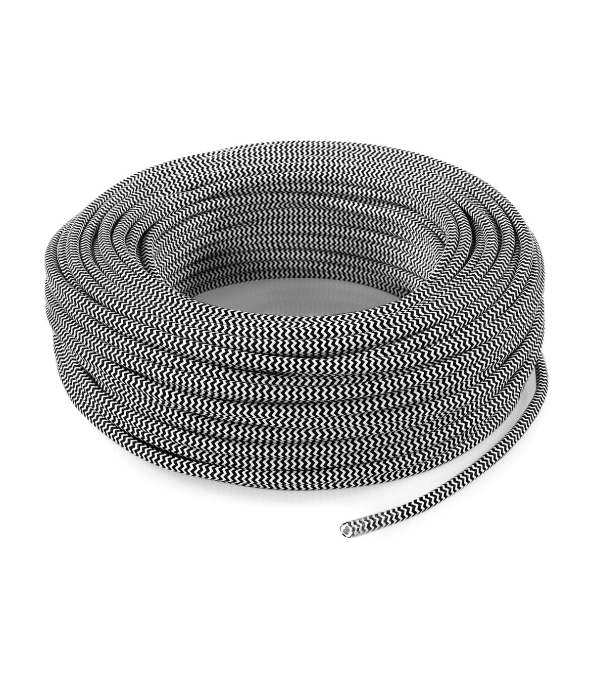 Strijkijzersnoer Zwart & Wit - rond - zigzag patroon