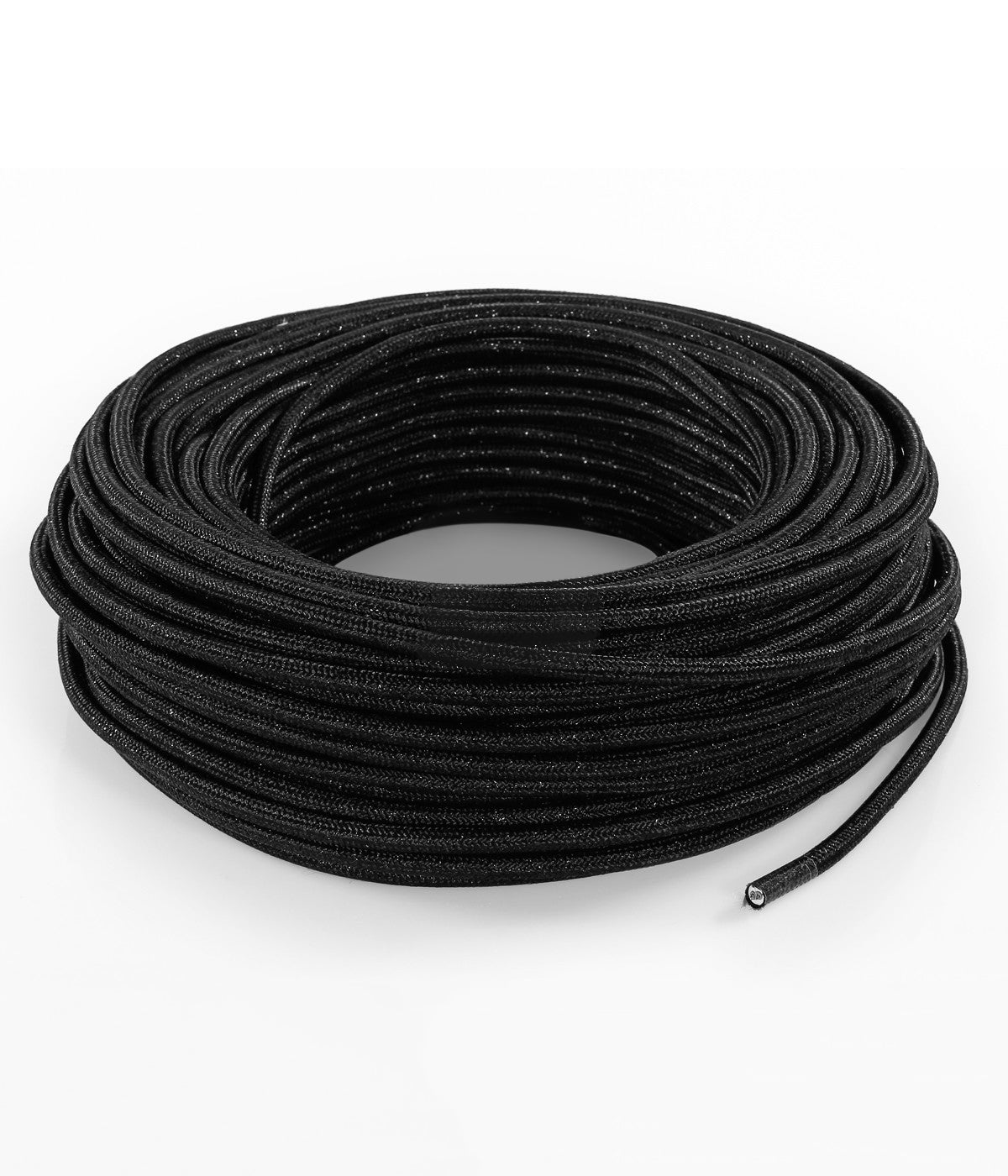 Strijkijzersnoer Zwart (glitter) - rond, effen stof