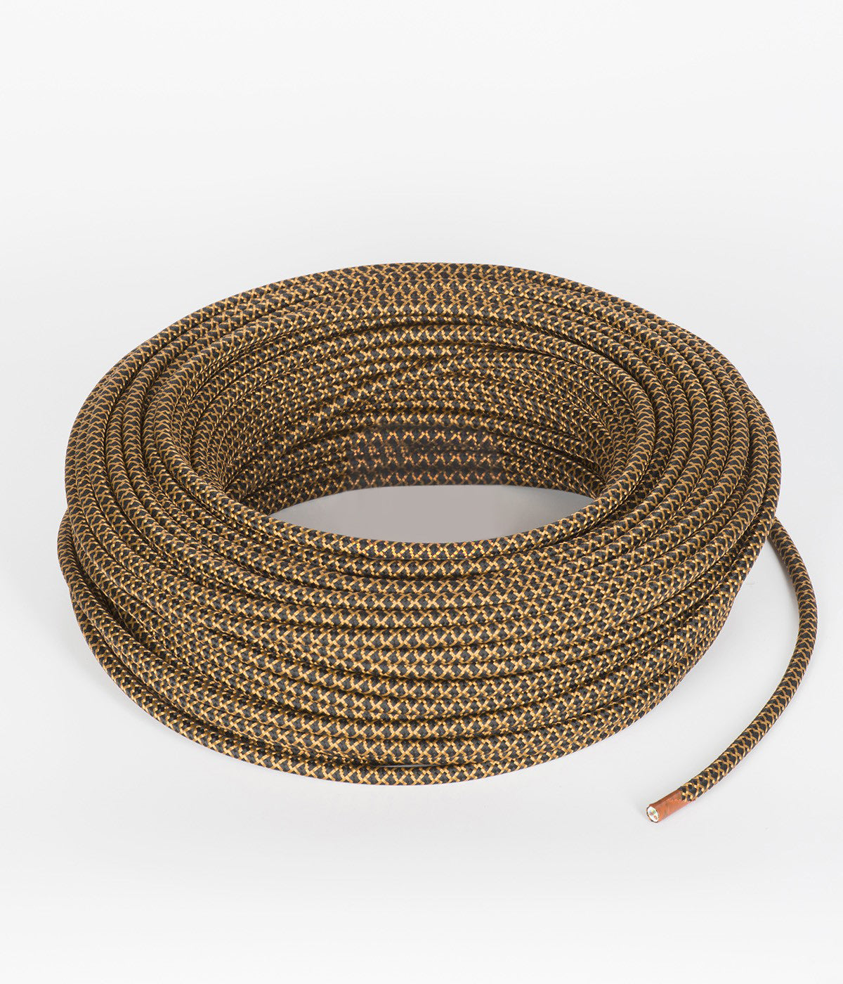 Strijkijzersnoer Zwart & Koper - rond - kruis patroon