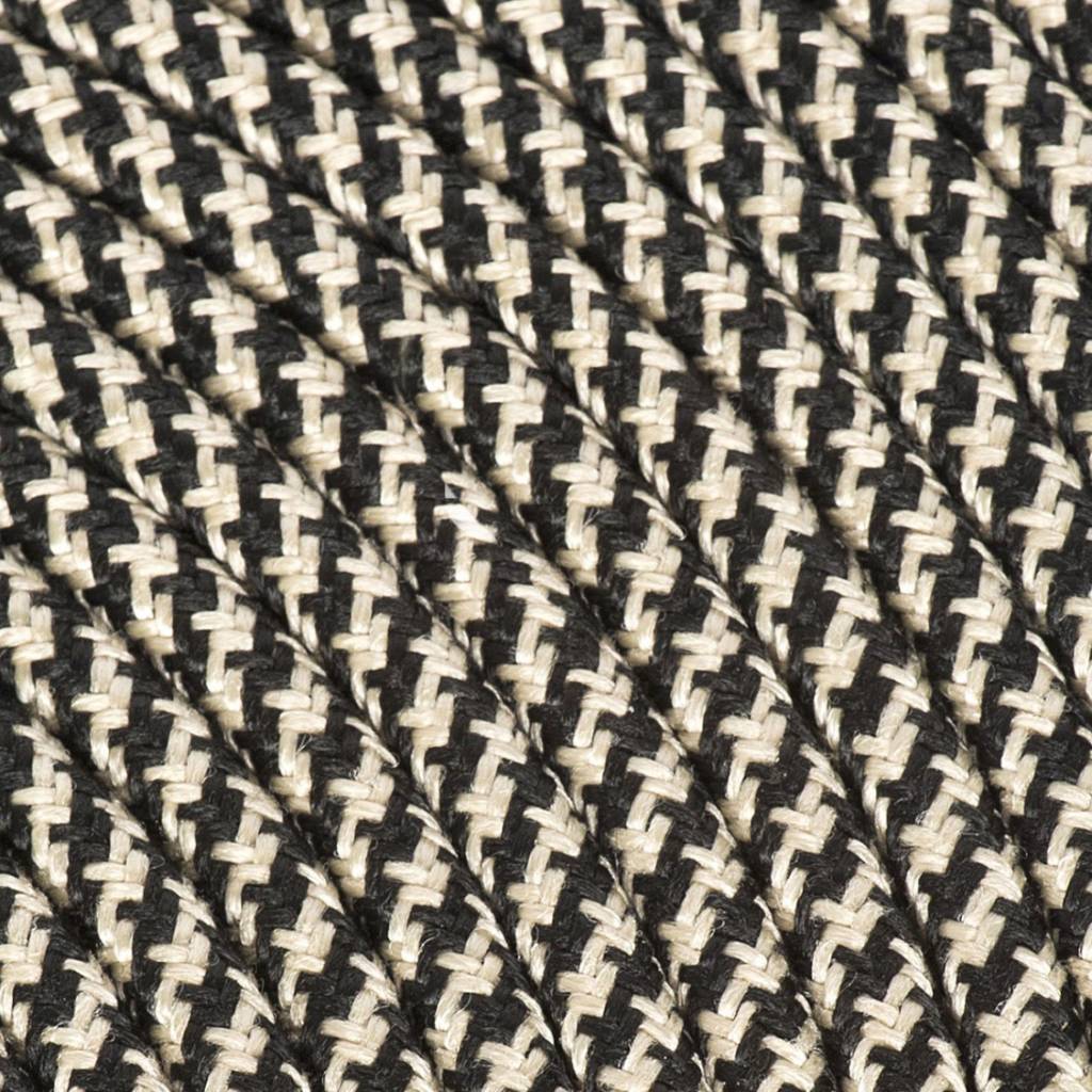 Strijkijzersnoer Zwart & Zand - rond, linnen - kruis patroon