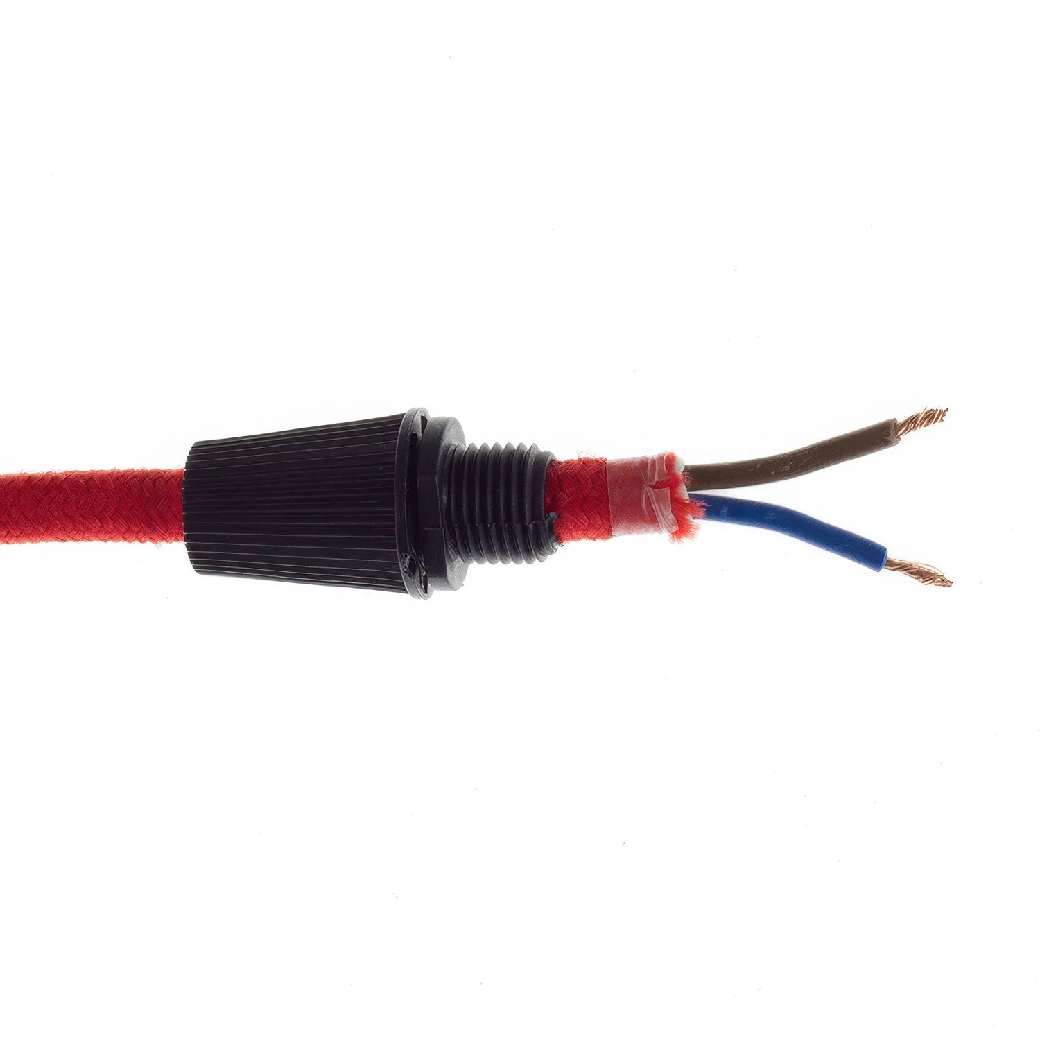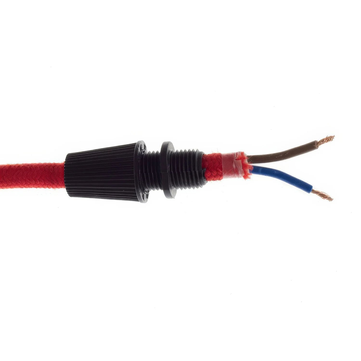 Het toevoegen van een trekontlaster zorgt ervoor dat het gewicht van de lamp veilig verdeeld wordt over het hele snoer en niet alleen aan de koperdraden hangt. Met het dopje werk je de fitting of plafondkap mooi af en weet je zeker dat het snoer goed gezekerd is.