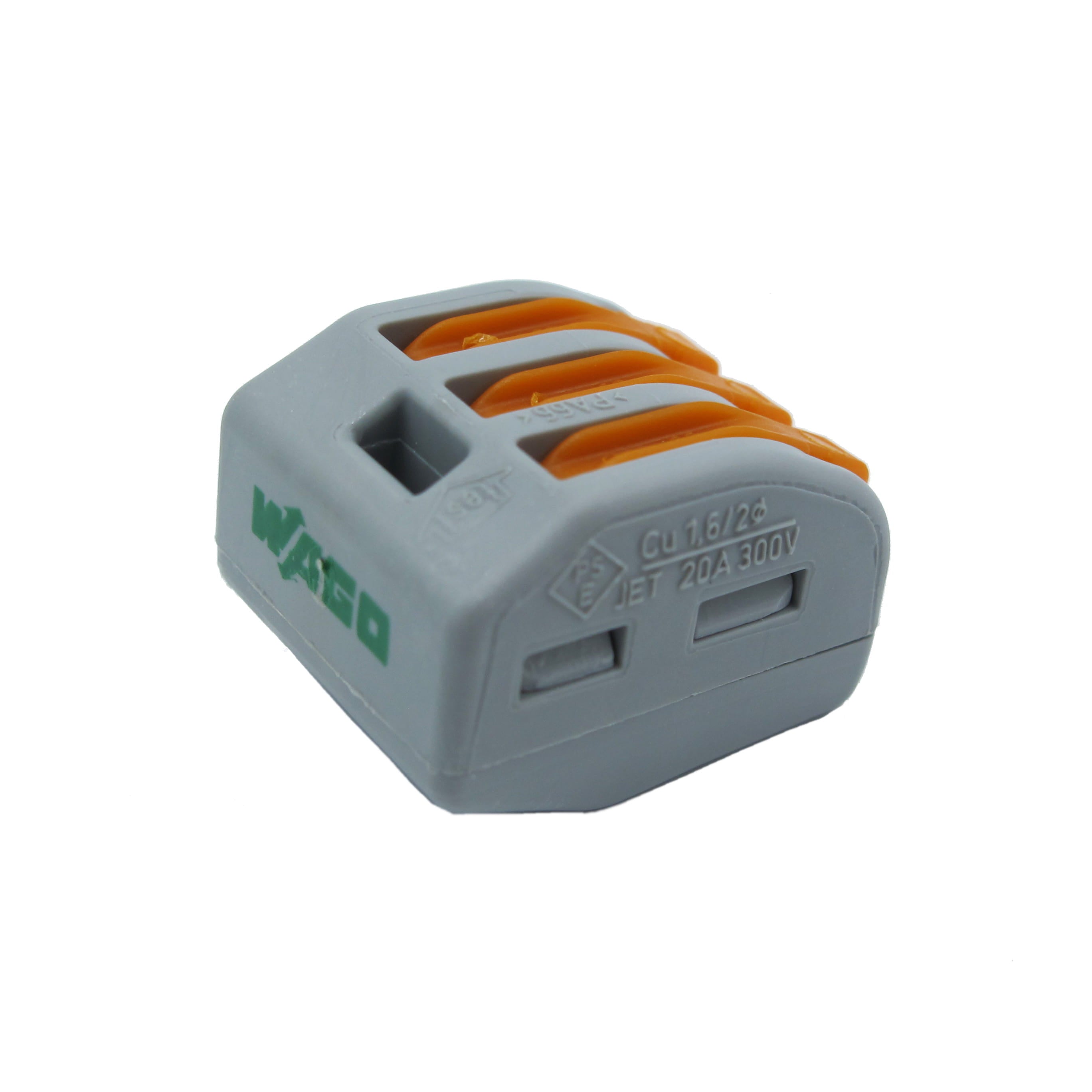Deze verbindings- of lasklem van Wago is een eenvoudige en snelle manier om meerdere lampsnoeren aan elkaar te verbinden. Denk bijvoorbeeld aan het aansluiten van draden in een plafondkap. Met de (hersluitbare) oranje lipjes kun je de snoeren eenvoudig weer losmaken waardoor je de klem vaker kunt gebruiken.